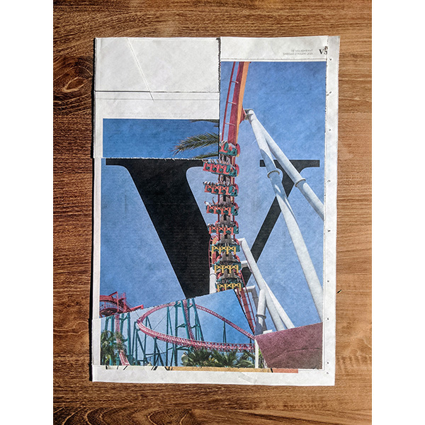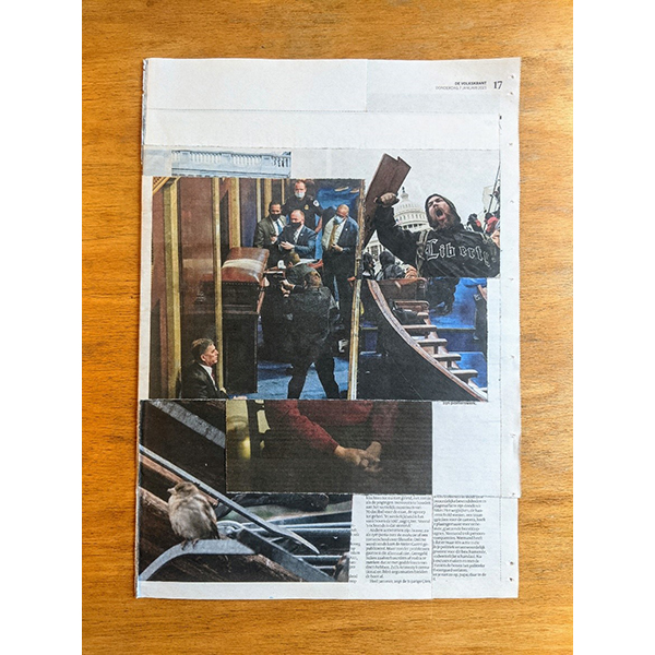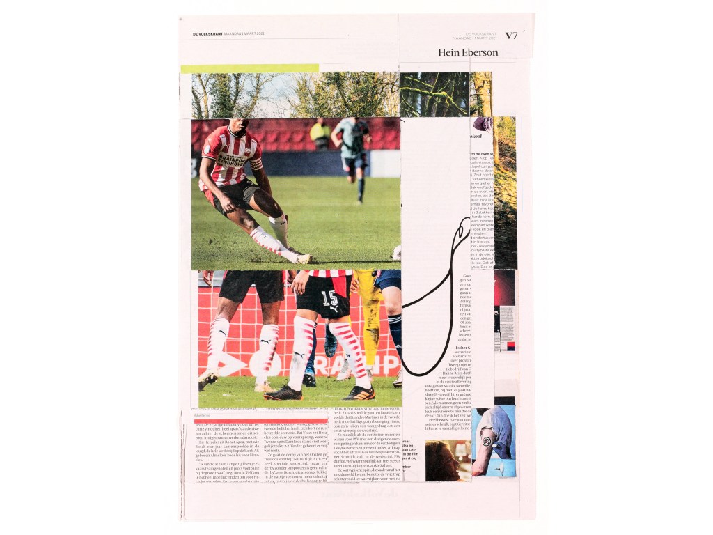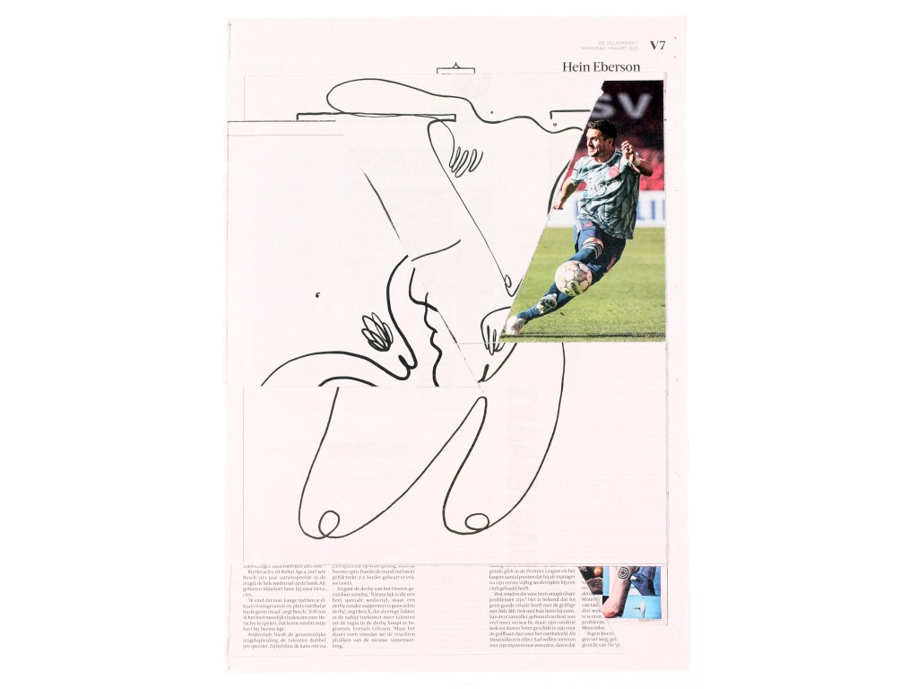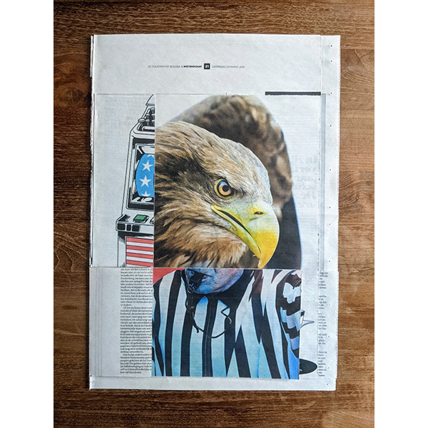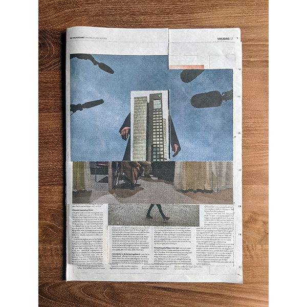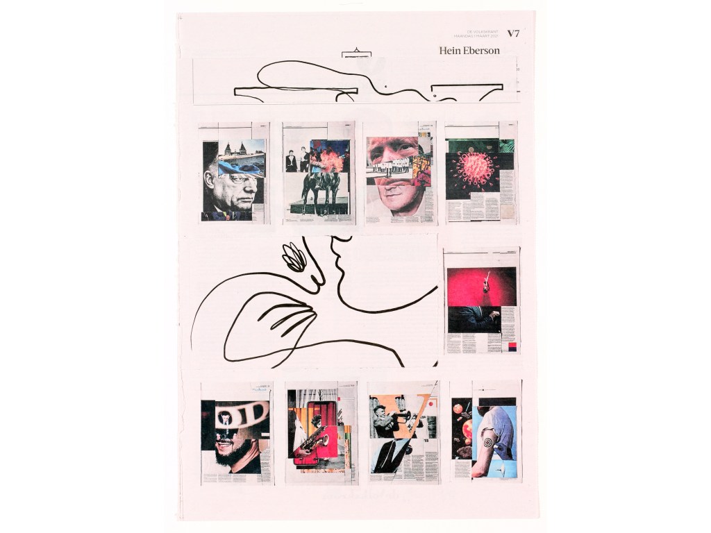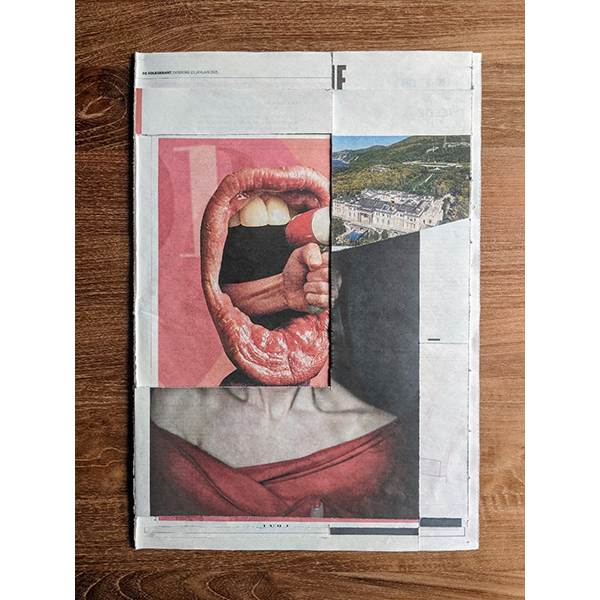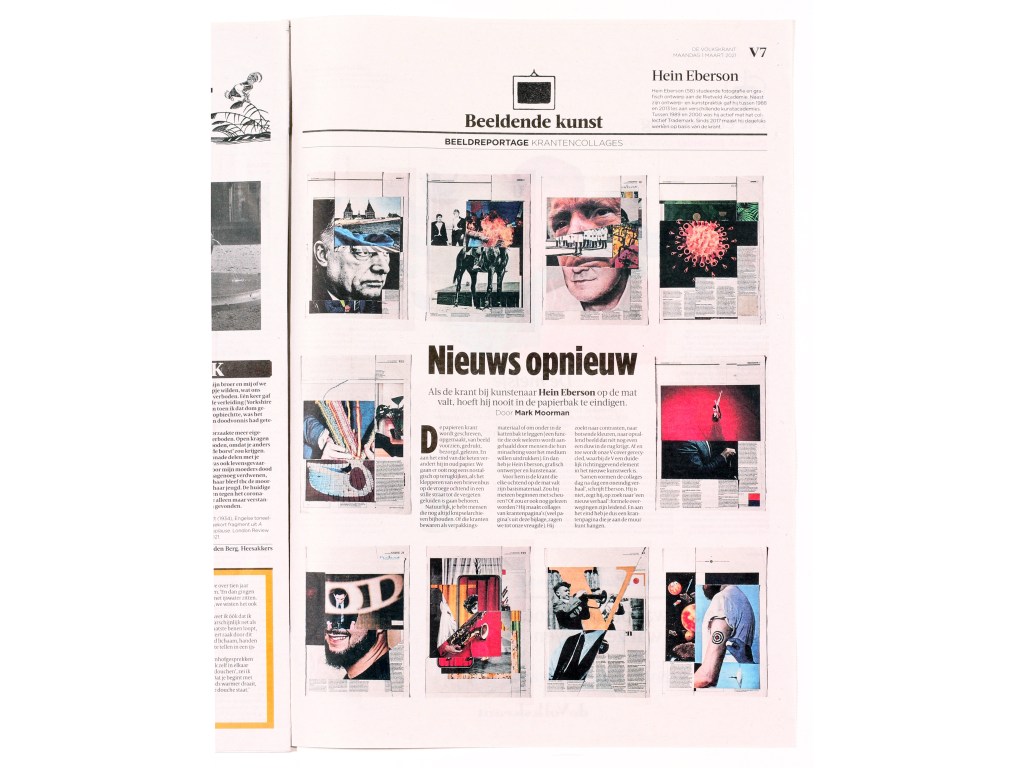 A3. Two unique collages, segment news and segment V, with 12 collages and text by Mark Moorman. Numbered and signed. In frames € 590,00 / No frame € 480,00 incl. postage. Edition of 10.