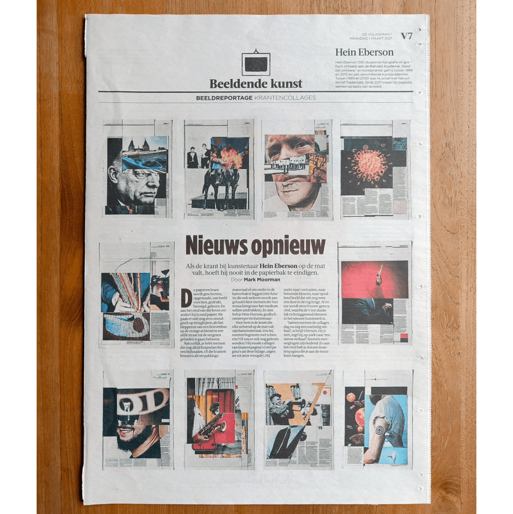Met een achtergrond in editorial design en beeldende kunst doorzoekt Hein Eberson kranten en tijdschriften om van dagelijks nieuws, wekelijkse opinies en maandelijkse stijlberichten tijdloze beelden te maken; met foto’s van mensen, plaatsen en gebeurtenissen die onze beleving en begrip van de grote, ongrijpbare wereld bepalen. Sinds mei 2017.